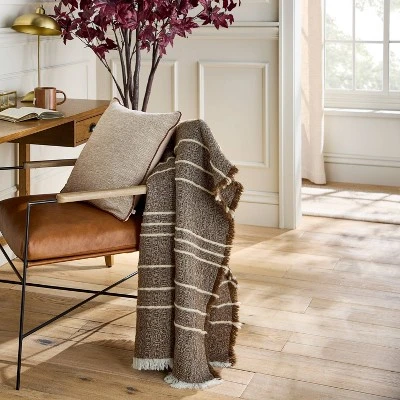 Add a touch of textural elegance to your decor with this Green Tweed with Faux-Leather Trim Toss Pillow from Hearth & Hand™ with Magnolia. This 18-inch woven square pillow features a tweed surface in light green, complemented by brown faux-leather trim along the edges for a chic appearance. With a 100% cotton exterior and a well-filled interior, this toss pillow adds the right amount of comfort and style to your sofa, couch, bench or bed.