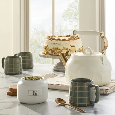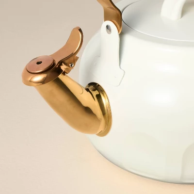 Enjoy your favorite cup of tea with ease with this 2-Quart Stainless Steel Arch Cutout Teapot from Hearth & Hand™ with Magnolia. The stainless steel cutout teapot features a removable lid with a whistle for easy heating, and it has a nylon handle on top for convenient lifting. Compatible with gas, induction and electric coil stoves, this white teapot makes an elegant addition to your kitchen.