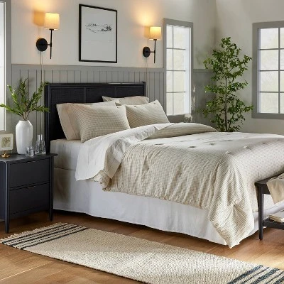 Enhance your indoor lighting with this Fabric Shade Wall Sconce from Hearth & Hand™ with Magnolia. This wall sconce features a black metal body and comes with a cream bell-shaped fabric shade for a chic contrasting look. The 1-way light setting with turn knob rotary switch allows for easy operation. Just fix it in your bedroom, hallway, or any other living area in your home for effective lighting with the help of included mounting hardware.