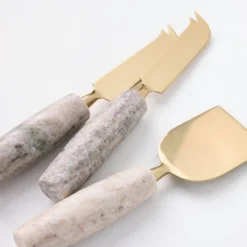3pc Brass Cheese Knives With Marble Handles Warm Beige – Hearth & Hand™ With Magnolia