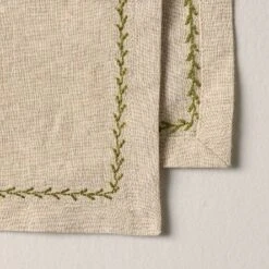 Set Of 4 Embroidered Border Cloth Cocktail Napkins Natural/Green – Hearth & Hand™ With Magnolia