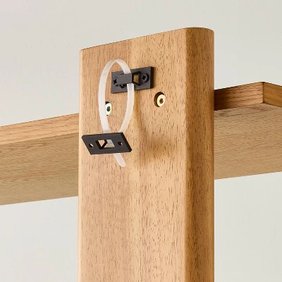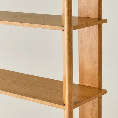 Accent your study area with the simplistic style of the Natural Wood Bookcase from Hearth & Hand™ with Magnolia. This natural-shade bookcase features an open design with multiple shelves, providing ample space for your books, vases, and more. Made of a wooden frame, this open bookshelf fits nicely around the space.