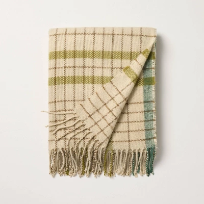 Fill your living space with autumnal charm with this Fall Plaid Lightweight Throw Blanket from Hearth & Hand™ with Magnolia. Made from 100% recycled polyester fabric and featuring a woven construction, this decorative throw blanket feels soft and cozy, making it perfect for snuggling up or styling your favorite chair or couch. Featuring a plaid design in rust and gray hues on a brown background accented with matching fringed trimming, it’s sure to bring seasonal charm to your space.